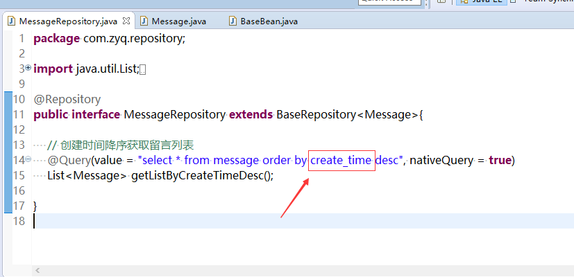 (2)最后检查发现是实体类中的createTime字段,在Hibernate自动生成的时候,生成了create_time。于是将SQL语句中的createTime改为create_time,即可。