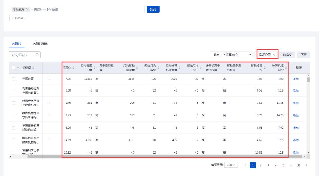 同时,在偏好设置里有“不推荐品牌词”选项,当我们不想投放竞品词、品牌词时,或者想用某个通用词、品类词这种计划/单元进行拓词时,记得勾选上这个设置条件,系统会直接帮我们过滤掉,非常好用便捷。