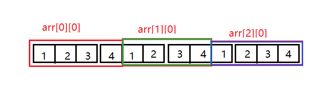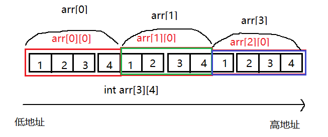 通过结果我们可以分析到,其实二维数组在内存中也是连续存储的。