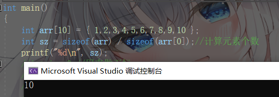 注:求一个数组的元素个数可以通过sizeof计算整个数组的类型大小再除以sizeof计算单个元素类型的大小就能得到整个数组的所有元素。