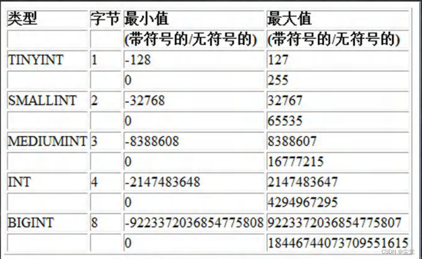 create table t10(id tinyint);//默认是有符号的