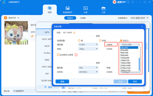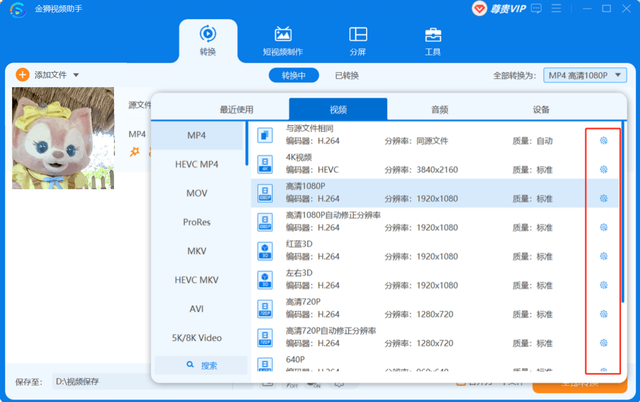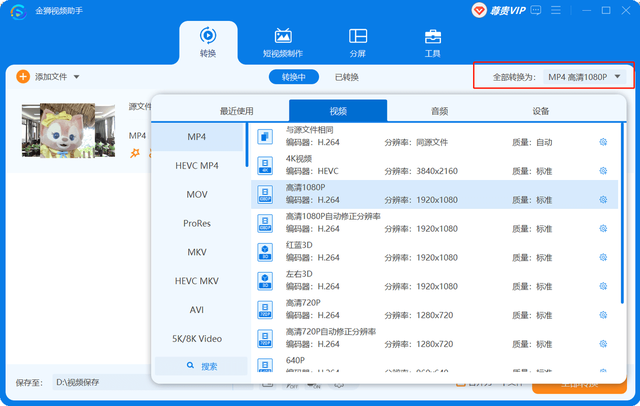 金狮视频助手可以轻松地将 480p 更改为 1080p,无需复杂操作。除了 1080p 之外,还可以将视频转换为 4K、5K 和 8K。此外,这款令人惊叹的软件支持超过 500 种流行格式,包括 MP4、WMV、AVI、MOV、MKV 等。