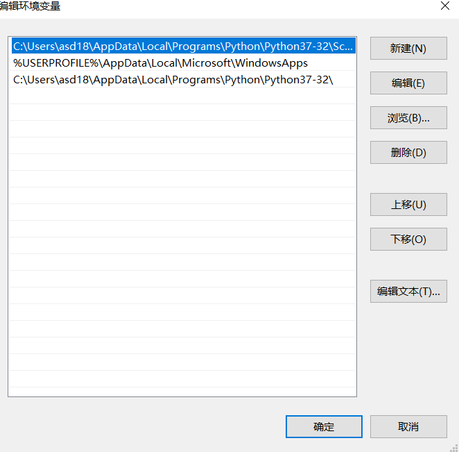 有下图第一和第三条环境变量存在则说明环境变量安装成功,没有则自行添加,否则python无法运行