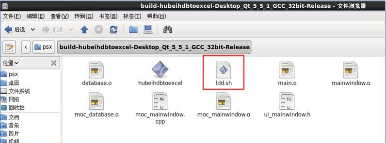 (2)将ldd.sh脚本复制到编译目录,如“build-hubeihdbtoexcel-Desktop_Qt_5_5_1_GCC_32bit-Release”;