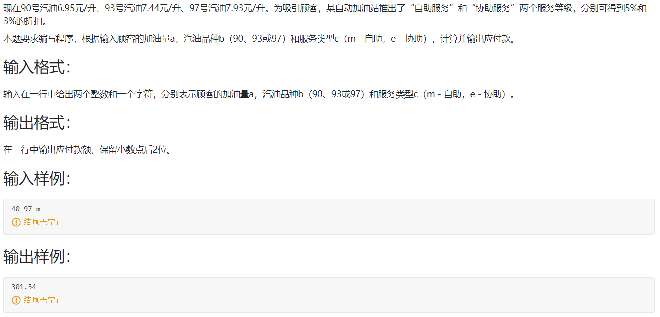 {int a,b;char c;double s;scanf("%d%d %c",&a,&b,&c);if(b==90){s=6.95;}else if(b==93){s=7.44;}else{s=7.93;}if(c == 'e'){printf("%.2f",a*s*0.97);}else{printf("%.2f",a*s*0.95);}return 0;