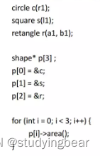 若要求用基类指针数组,使它每一个元素指向每一个派生类对象,做测试:基类指针指向子类对象,统一调用接口。