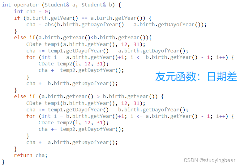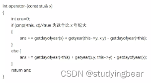 计算两天的差:类内定义friend int operator -(const stu& x);类外定义如下: