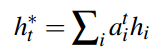 接着以注意力分布为权重,对Encoder的隐状态序列进行加权求和,得到上下文向量: