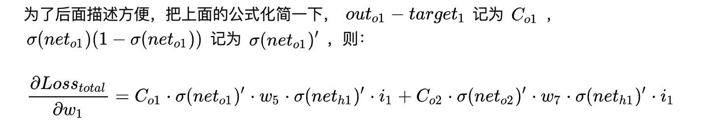 可以看出,loss对w5的导数主要与Co1、激活函数的导数,以及权重w5、w7有关(如果是中间层,则没有输入的事,因此不考虑i),由于Co1作为输出层的计算,一般不作考虑。
