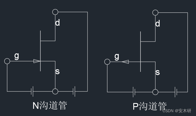 漏-源之间加正向电压,形成漏极电流,即电流从漏极到源极;