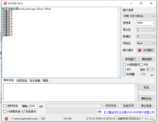 电容触摸按下打印提示语句仅支持单击。