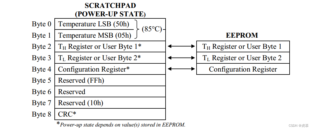 - SCRATCHPAD(暂存器):本质上是RAM,用于总线的数据交互,存储温度等信息。