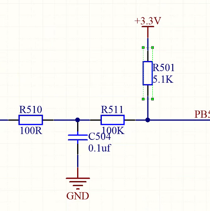 随后因为100K,5.1K的配比会导致电压的偏差过大,电压采样的精度过低,在输出端加入了电压跟随器来降低信号的输出阻抗,电压采样正常。