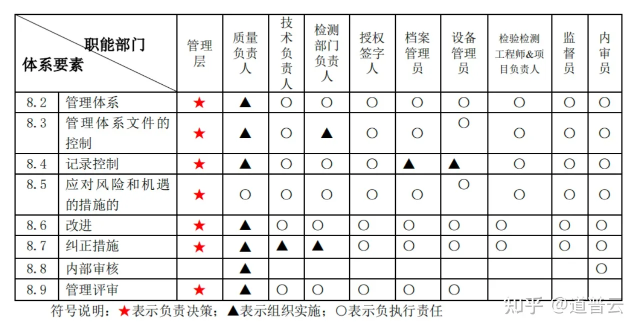 组织管理层对公正性做出承诺;负责管理体系的建立和有效性运行;确保管理体系所需要的资源;确保制定质量方针和质量目标;确保管理体系要求融入检验检测的全过程 ;组织管理体系的管理评审;确保管理体系实现其预期 结果;满足相关法律法规要求和客户要求;提升客户满意度;运用过程方法建立 管理体系和分析风险、机遇。