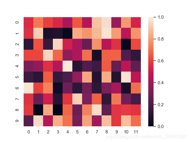 data: 矩阵数据集,可以是numpy的数组(array),也可以是pandas的DataFrame。如果是DataFrame,则df的index/column信息会分别对应到heatmap的columns和rows,即pt.index是热力图的行标,pt.columns是热力图的列标。