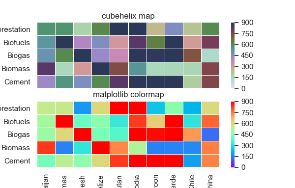 camp:从数字到色彩空间的映射,取值是matplotlib包里的colormap名称或颜色对象,或者表示颜色的列表,如果没有提供,默认值将取决于是否设置了center。