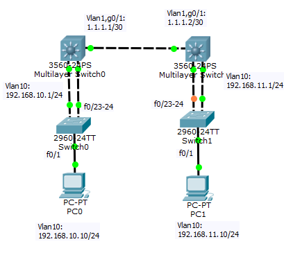 ip routi //启动三层交换机的路由功能