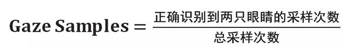 Gaze Samples也称为有效采样率,指的是可以计算出视线落点(Gaze point)的采样次数占总采样次数的比例。