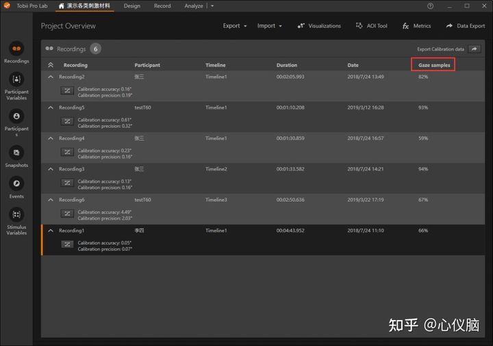 数据质量的好坏并不是影响Gaze Samples高低的唯一因素。除此之外,实验设计也是影响Gaze Samples高低的一大因素。