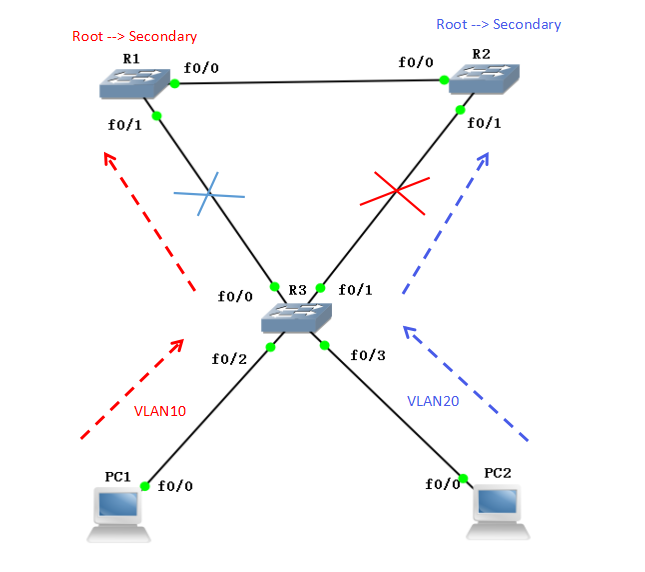 R2(config)#spanning-tree vlan 20 root secondary VLAN 20 bridge priority set to 16384VLAN 20 bridge max aging time unchanged at 20VLAN 20 bridge hello time unchanged at 2VLAN 20 bridge forward delay unchanged at 15