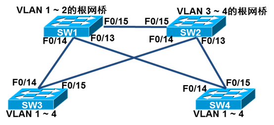 SW1(config)#spanning-tree vlan 1 root primary //配置根端口