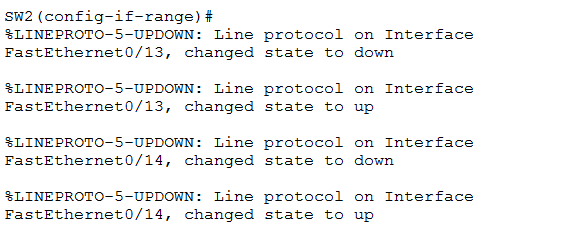 SW2(config)#interface range fastEthernet 0/13-15 //进入端口