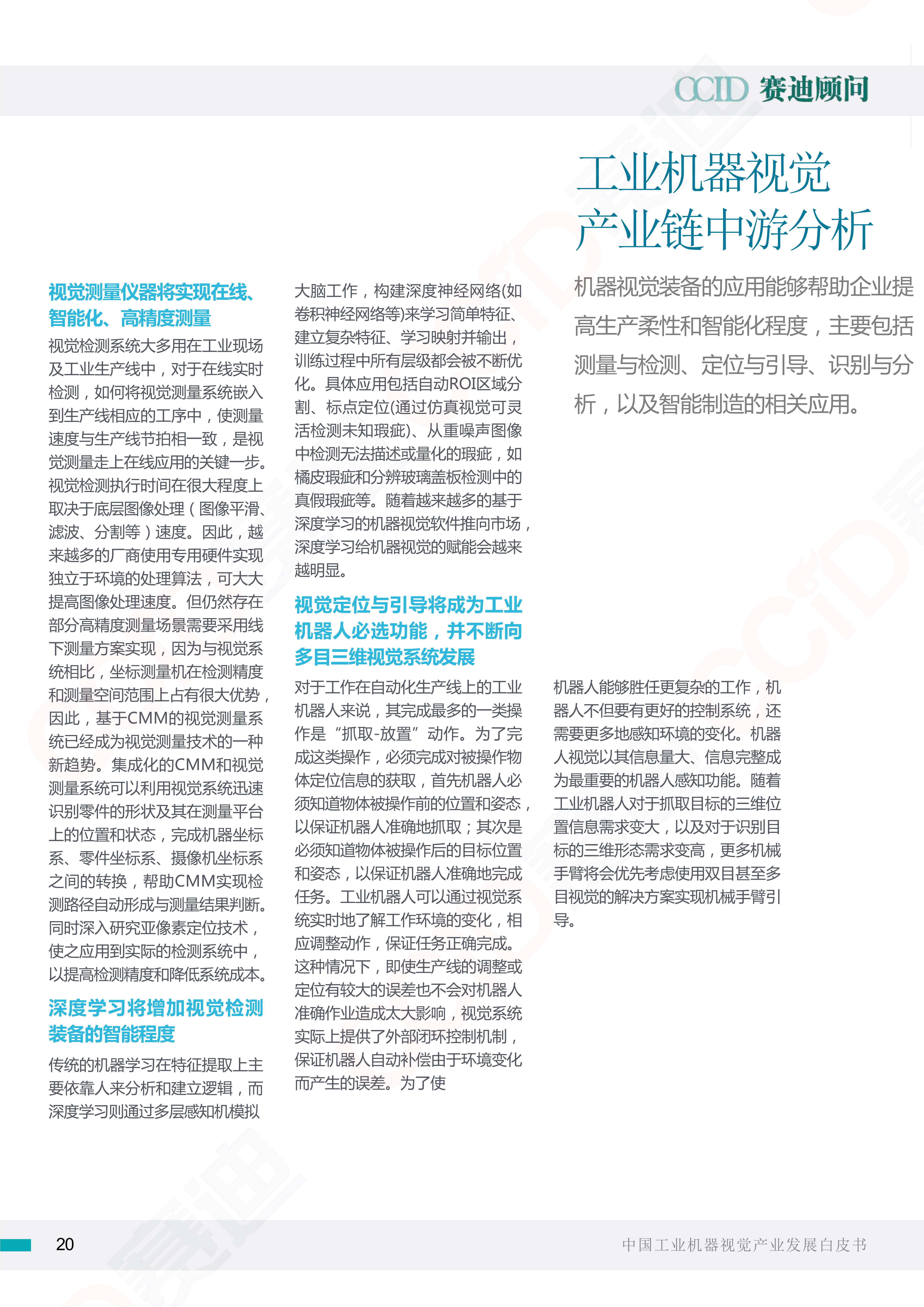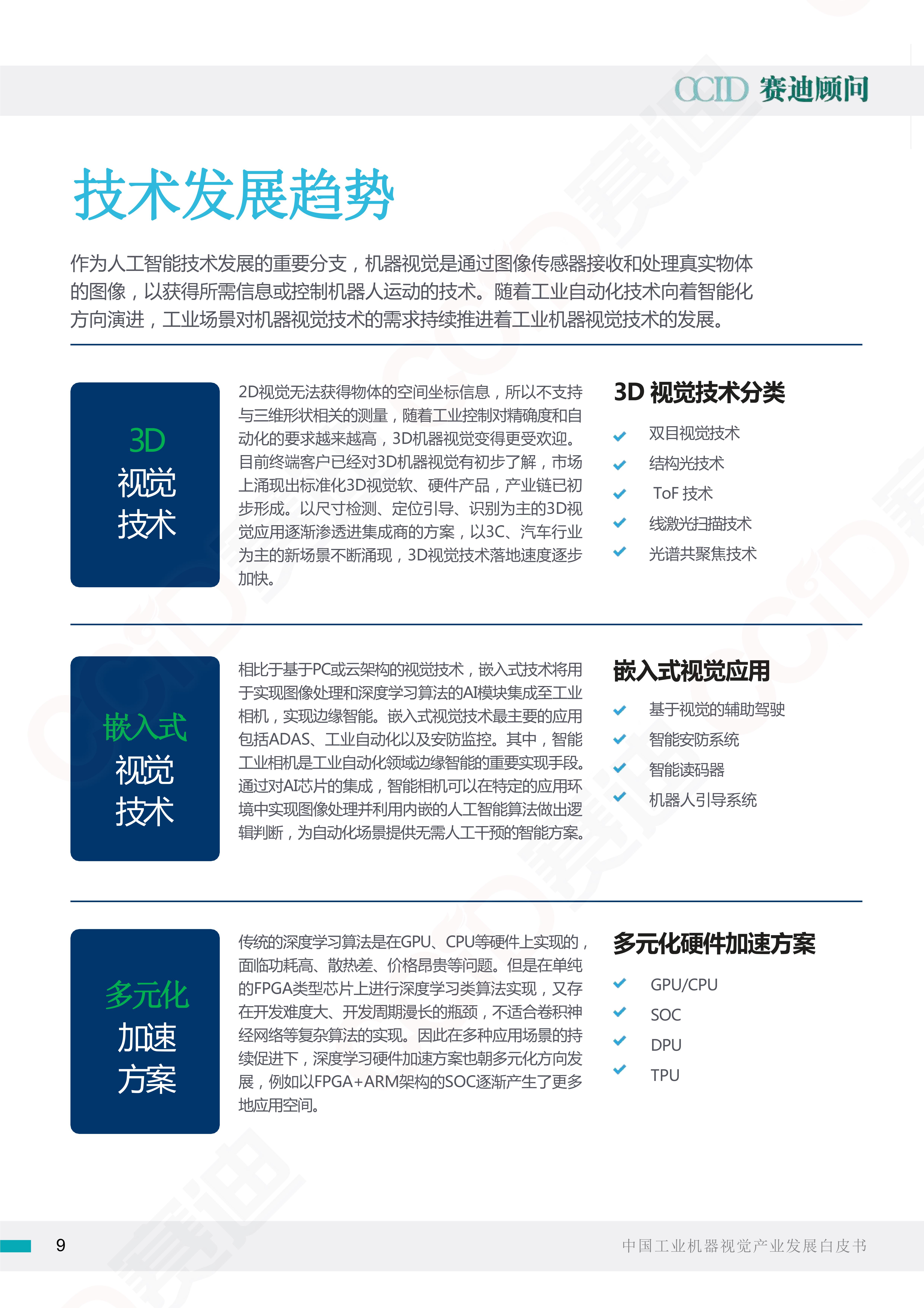 辰视智能主要产品有:机器人三维视觉引导系统、深度学习分类与检测系统、二维/三维视觉定位系统等,产品解决了机器人没有视觉感知与目标识别功能,影响机器人便捷应用的关键问题;使机器人拥有“双眼”和“大脑”。