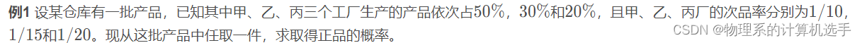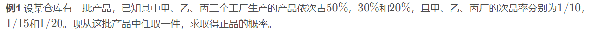 这个问题是求全概率的,在这里我们给它加上一问求:取得正品且是甲厂生产的概率。