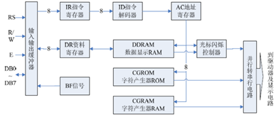 这块存储器是用来存放我们要LCM显示的资料,只要将标准的ASCII码放入DDRAM中,内部线路会自动以该ASCII码为地址,将相应的数据送到显示器上。