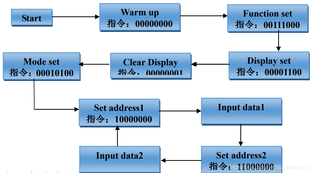 LCD控制器的下一条指令8'b11000000同理,设置好起始位置后开始传输第二个数据。