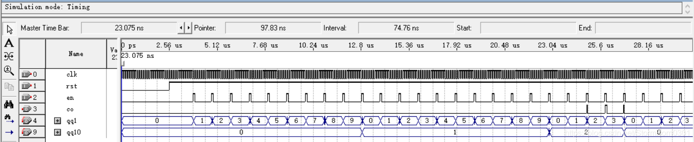 (7)二十四进制计数器同理,仿真波形如下图所示。
