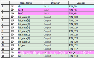 (4)新建仿真文件Vector Waveform File,保存为lcd1602.vmf。在左侧节点区导入所有管脚后,将state_q和data_q寄存器也导入,方便观察。