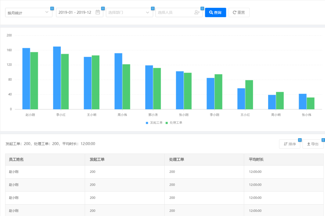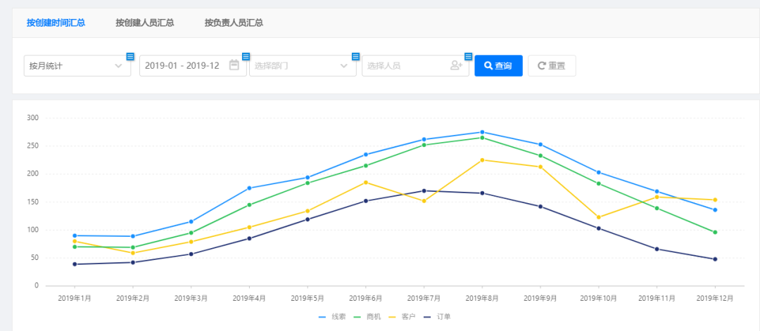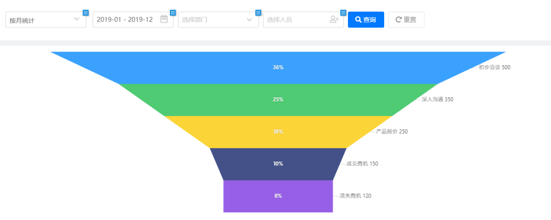 如对销售的拜访客户数、销售线索获取数量、签单客户数,贡献利润占比等,对客服的工单处理数量、客户评分、分钟会话数量等,该部分分析主要根据使用者的操作记录产生数据。