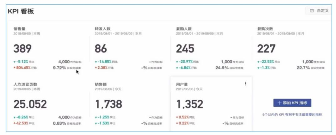 一般设置6个左右的数据指标,有利于专注于分析最重要的指标。