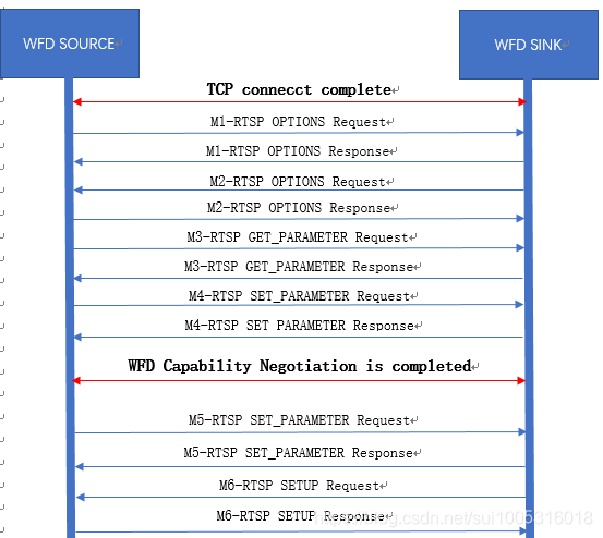 1、WFD Source和WFD Sink之间的TCP连接成功以后,WFD Source需要在6s内发送RTSP M1 Request