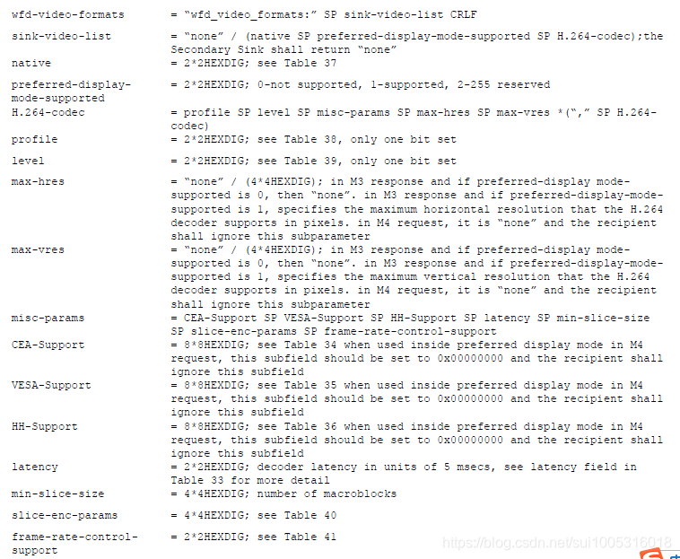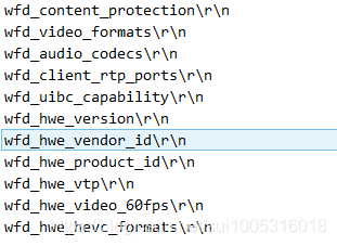 例如:wfd_video_formats: 40 00 01 10 0001bdeb 051557ff 00000fff 10 0000 001f 11 0780 0438, 02 10 0001bdeb 155557ff 00000fff 10 0000 001f 11 0780 0438\r\n