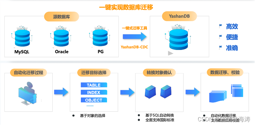 YashanDB-TP可通过YashanDB-CDC工具实现异构数据源的一键迁移(Oracle、MySql、PG)。