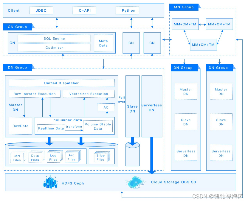 - 4.极致事务性能的行存表及全内存列存表提供不同业务负载