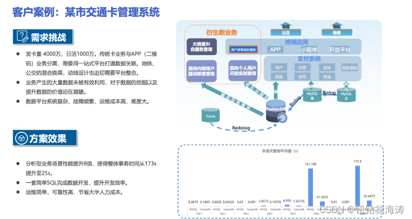 此类场景对事务处理的时效性和准确性要求严苛,并要求对数据进行高可靠保护。YashanDB-TP SE拥有精细化的事务管理能力,强大的存储底座结合高速的SQL引擎,在保证数据强一致性的基础上实现极致的事务处理性能。