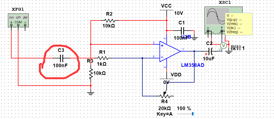 反相放大这个电容干嘛用的?为什么一加上去放大倍数就不是20了?