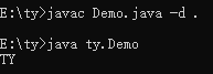 如果有包,java命令必须在包的上层目录执行完整路径名(完全限定名),上例中Demo.class的完全限定名是ty.Demo。如果在D盘下,有一个A.java,包路径为aaa.bbb.ccc,必须在D盘下,执行java aaa.bbb.ccc.A才行,此处的“在D盘下”,暂时可以看做直接在D盘下,也可以通过-cp指定到D盘下。