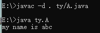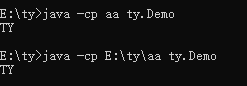 使用-classpath(或者 -cp,简写,意思相同)指定.class的目录,使用相对路径,绝对路径都可以,这个目录直接通到ty的上级即可。