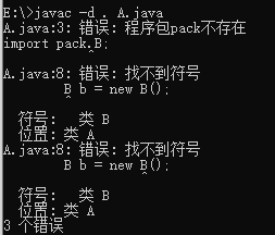 然后将A和B都放入D盘根目录,使用javac -d . 编译A.java