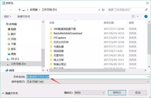 | ❷ 将下面的代码:DIR *.* /B >文件名列表.CSV,复制粘贴到文本文档中; ❸ 将文本文档另存为 .bat 格式,另存方法,点【文件】-【另存为】-【修改文件名称】-最后加一个「 .bat 」后缀; |
