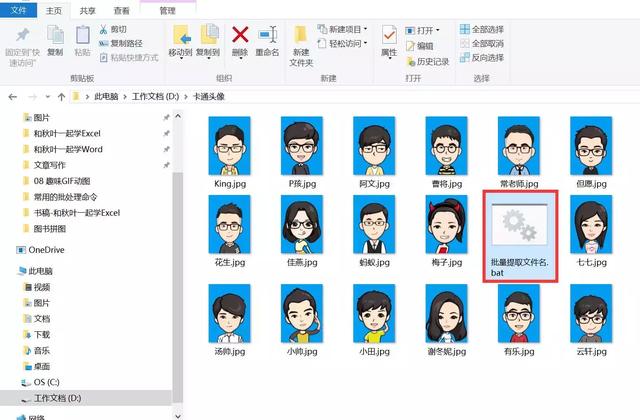 ❹ 把保存好的 BAT 文件复制到想要提取文件名的文件夹中。