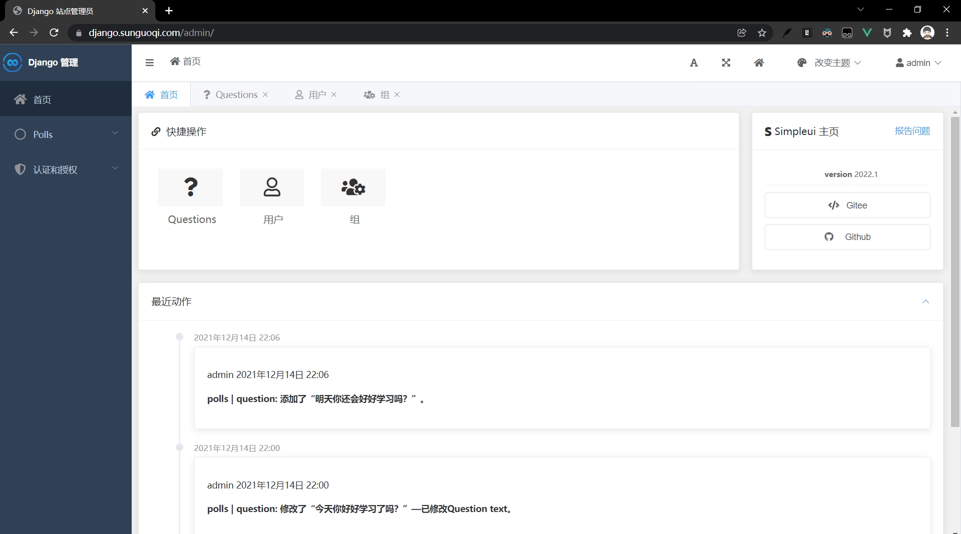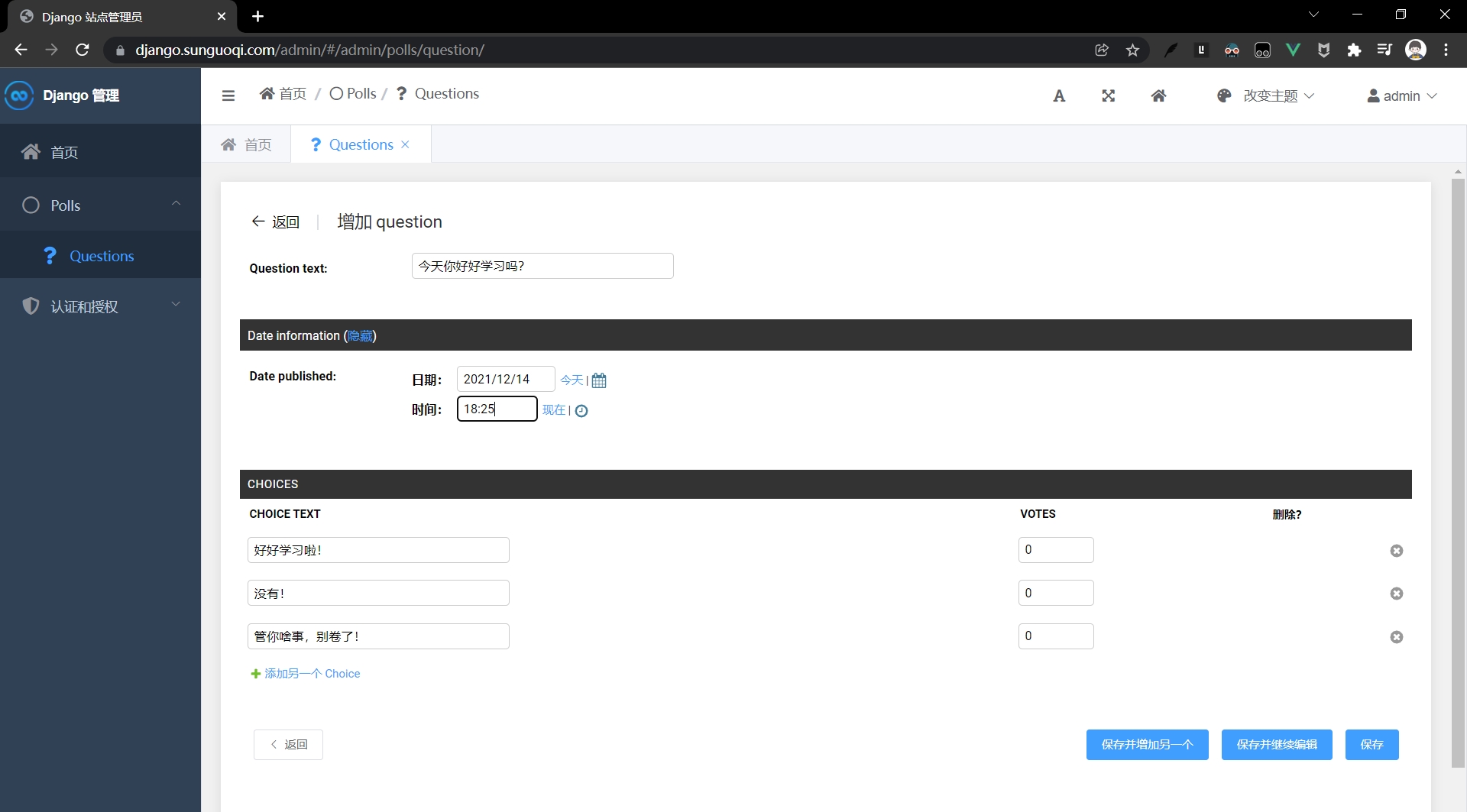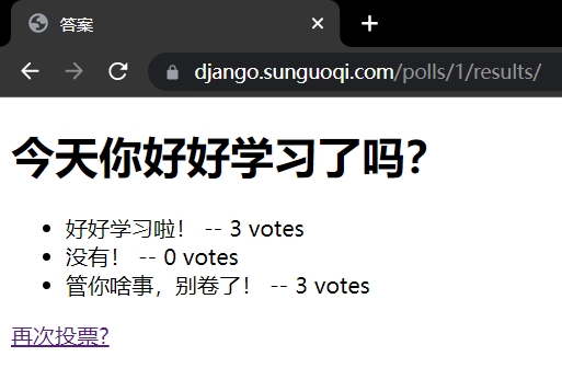 访问django.sunguoqi.com/polls/进行投票。