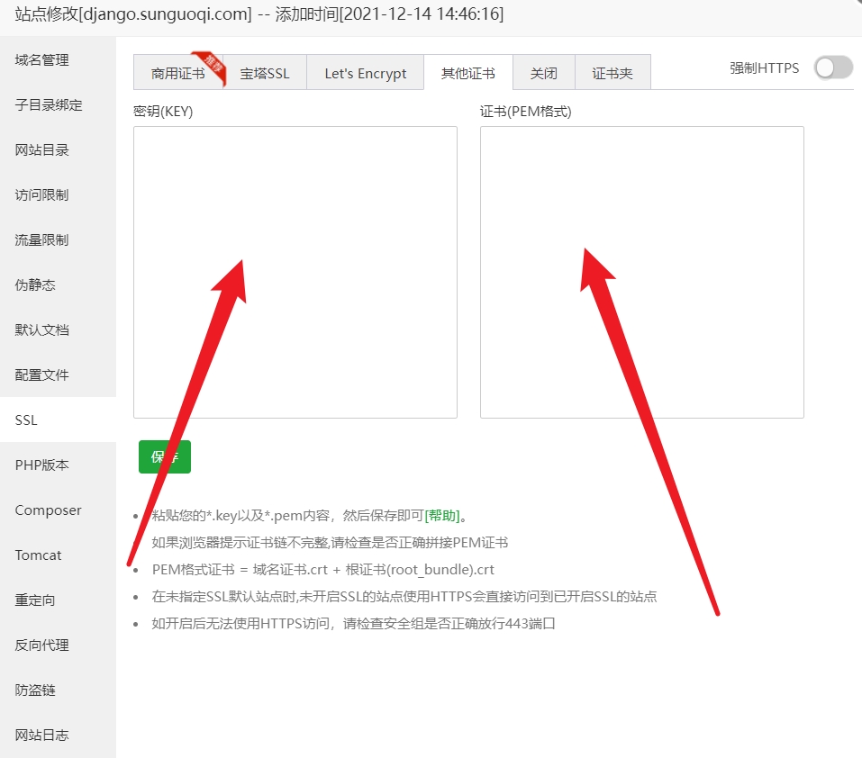 - 2、配置 SSL 证书(可不做)