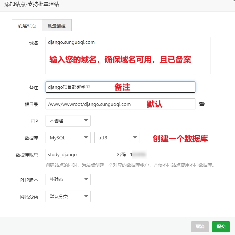 1、使用宝塔面板创建一个站点