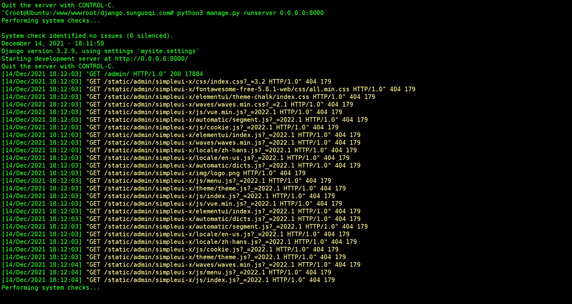 python3 manage.py runserver 0.0.0.0:8000