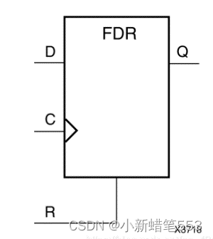FDR : D Flip-Flop with Synchronous Rsest 同步清除D触发器。FDR 拥有一个时钟输入接口,一个D触发器数据接口,一个同步复位接口和一个触发器输出接口,当同步复位接口为高电平时,时钟的上升沿触发寄存器复位(置0);当同步时钟接口为低电平时,时钟的上升沿触发寄存器装载数据接口的数据。